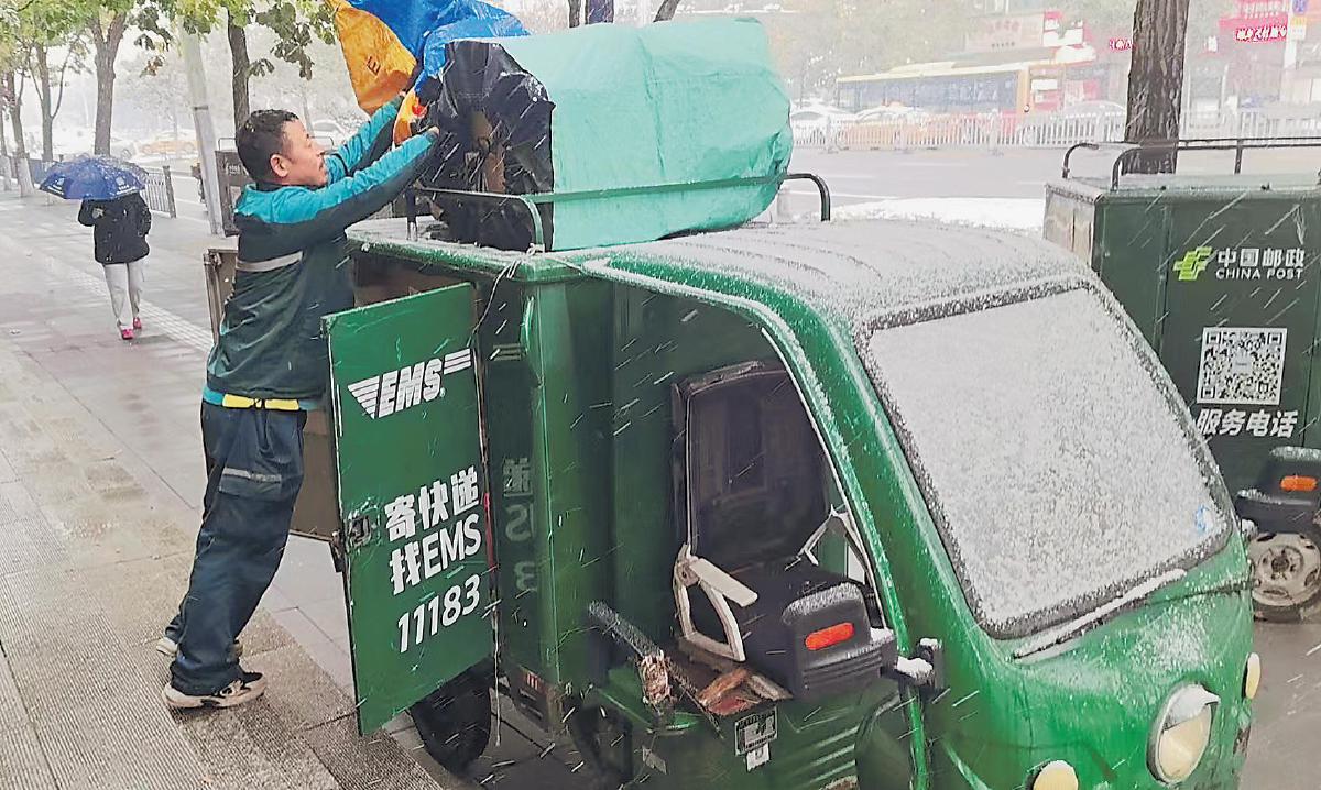 • “冰城”初雪中的一抹“郵政綠”